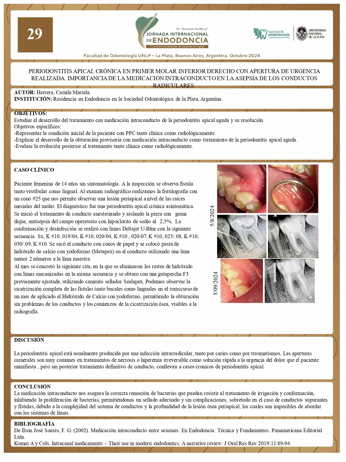 Fil: Salles, Miriam. Universidad Católica de La Plata. Facultad de Odontología UCALP Convenio SOLP. Cátedra de Endodoncia. La Plata, Argentina